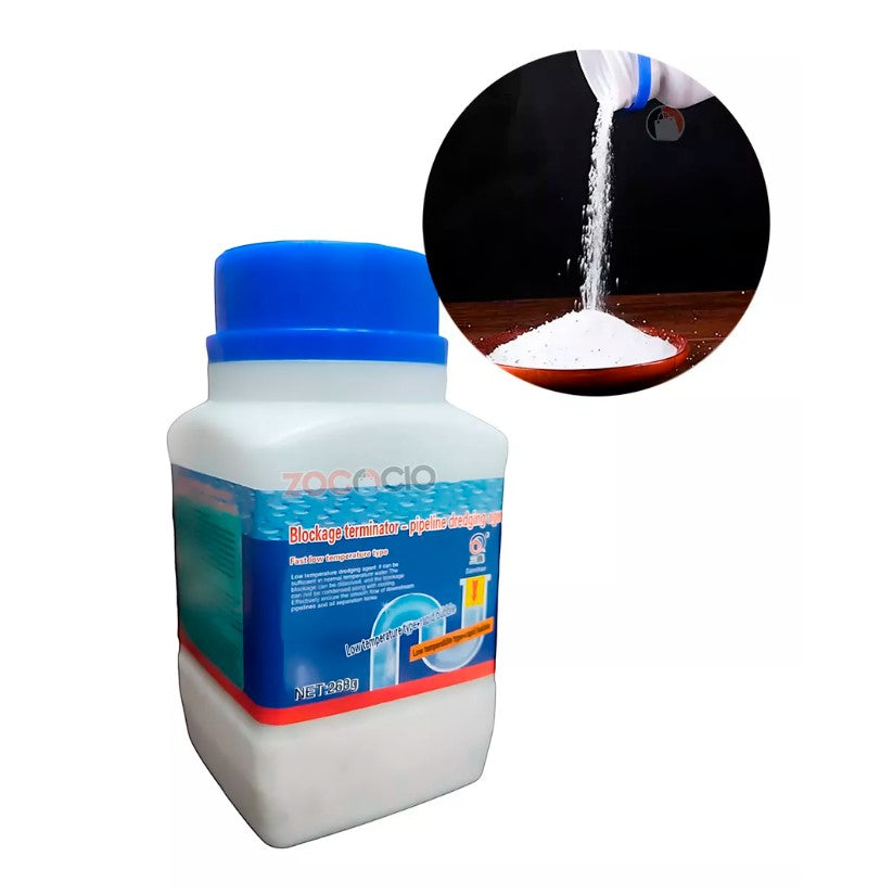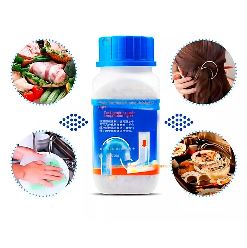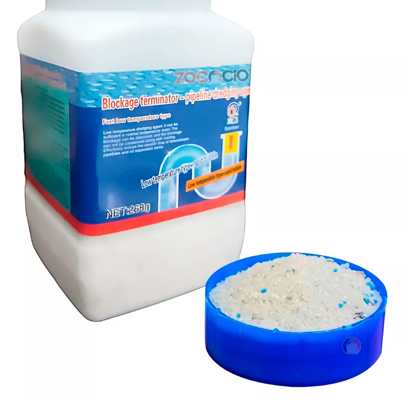 Este polvo cuenta con una fórmula química avanzada que penetra profundamente en las obstrucciones para descomponer la grasa, restos de jabón y otros residuos que se acumulan en tus tuberías. Una vez activado con agua, el polvo se disuelve rápidamente y comienza a trabajar, eliminando el bloqueo sin necesidad de desarmar las tuberías o utilizar costosos servicios de plomería. ¡Es ideal para esos momentos en los que necesitas una solución rápida y efectiva!